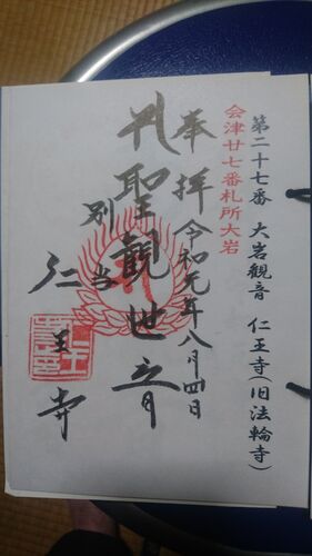 こんばんは。tsuneです。 第二十七番札所は会津美里町西本にある 「天台宗牛伏山仁王寺 大岩観音」です。 おおいわかんのん ごめんなさい。お堂の写真ありません。 〈目次〉 観音堂 御朱印 アクセス 大岩観音(おおいわかんのん)について 御詠歌 第二十六番…
