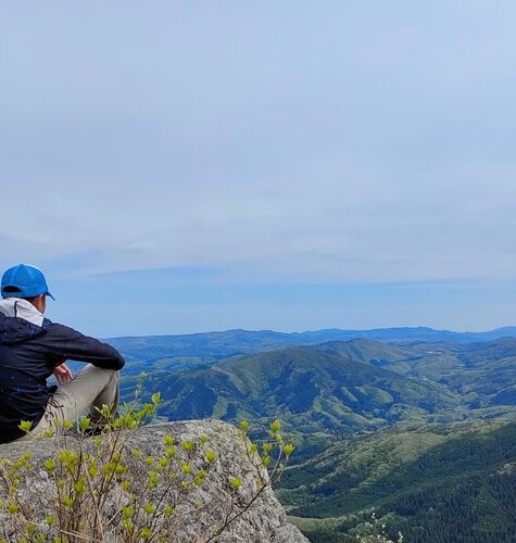 こんばんは。tsuneです。 5月3日(水)憲法記念日に福島県田村市の移ヶ岳の山開きに登ったあと同じ田村市の鎌倉岳(常葉)967mに登ったお話です。 移ヶ岳の山頂から見えた鎌倉岳(常葉)です。尖っているのが鎌倉岳。 萩平コース駐車場~石切り場跡 石切り…